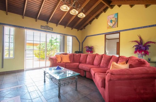 Cadushi Cove is a sprawling Villa with a new resort-style pool! Sleep 10 guests across 4 bedrooms, with 3 full baths and 2 separate living rooms! Centrally located 10 minutes from beaches and walking distance to Hooiberg, Casibari Rock Formation, and more! Enjoy the massive and private outdoor space for a game of cornhole or an alfresco meal! Enjoy a drink at the in-pool bar and catch some rays on the in-pool sun loungers.