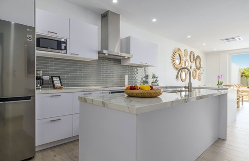 The gorgeous villa is in Catalina Cove, an idyllic escape in northern Noord, Aruba, just across the street from the renowned Boca Catalina beach. This charming enclave offers a perfect blend of tranquility and accessibility, allowing you to immerse yourself in the natural beauty of the Caribbean while being near some of the island's most beloved beaches.