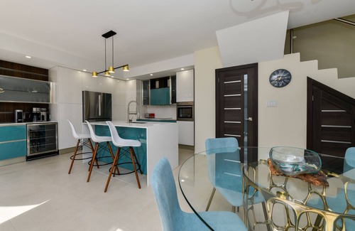 This villa is constructed in 2022 with the highest quality furniture and is located in a safe, quiet and family friendly gated community of Gold Coast in the Northern part of the Island, very close to Arashi, Boca Catalina and Malmok Beach, which is perfect for snorkeling.
