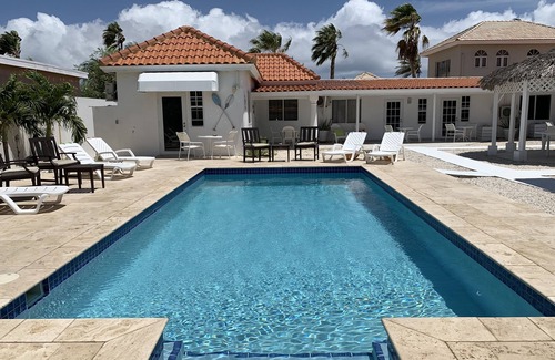 TU CASITA en ARUBA, It's a complex of Six houses, each have their own kitchen and bathroom and they share the swimming pool and grill area. You can walk to the beach and the mall and restaurants area. The house is two block away of the Ritz Carlton Resort and the high rise hotel area